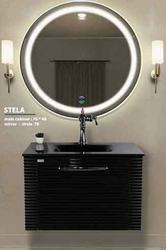 کابین روشویی مدل استلا با سایز متوسط 70*40 سانتیمتر دارای سایز متوسط میباشد . داراس 3 سال گارانتی وجنس کاسه روشویی کابین روشویی از کورین ساخته شده است . متریال کابین روشویی از چوب پلاستیک مخصوص زد اب تولیذ شده است . اینه با قطر 70 سانتیمتر وچراع دار تاچ و لمسی میباشد .